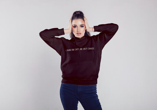 I run on caffeine & chaos Maroon Hooded Sweatshirt for Women