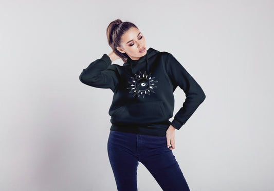 Sun Eye Black Hooded Sweatshirt for Women