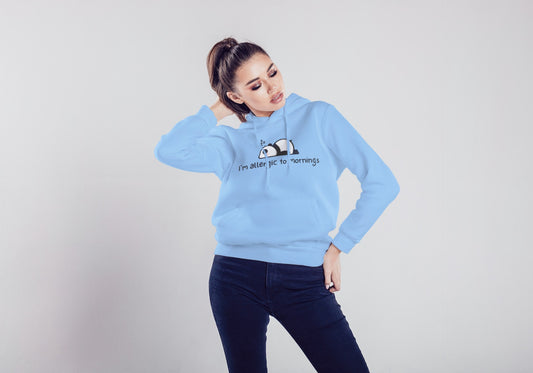 I'm Allergic to Mornings Baby Blue Hooded Sweatshirt for Women