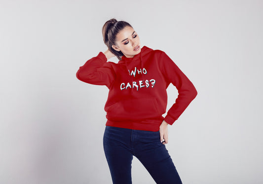 Who Cares Red Hooded Sweatshirt for Women