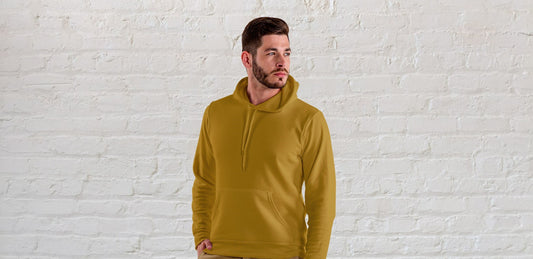 Mustard Yellow Solid Hooded Sweatshirt for Men
