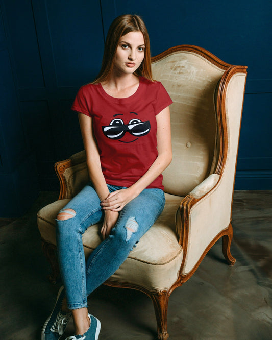 Cool Smiley Red Regular Fit Women’s T-Shirt