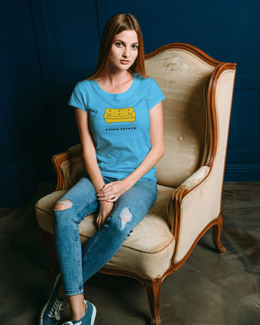 Couch Potato Sky Blue Regular Fit Women’s T-Shirt