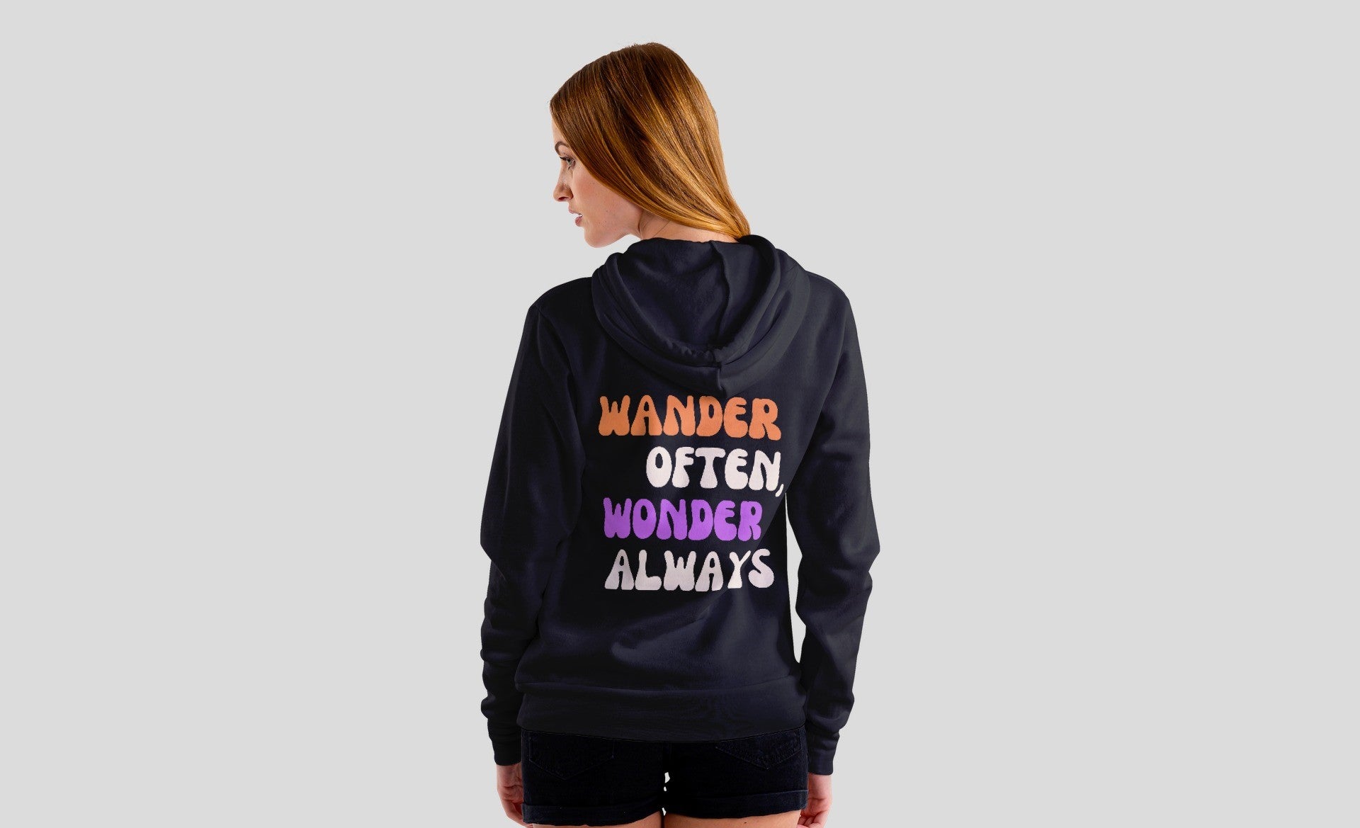 Wander Often, Wonder Always Black Hooded Sweatshirt for Women